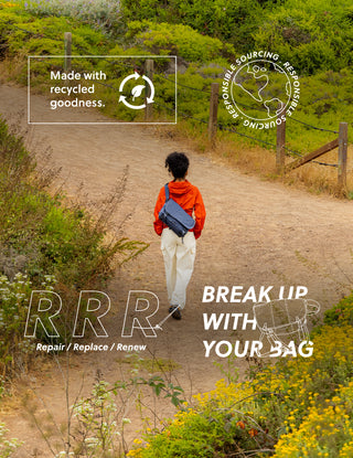 Sustainability is more of a journey than a destination. And we hope the steps we take are always in the right direction. While we continue to grow our collections of bags made from recycled pre- and post-consumer materials, there are other ways we can leave a smaller footprint — like 100% recycled and recyclable shipping bags, manufacturing more bags closer to home to reduce emissions, and partnering with suppliers who helps us create products that require less water, use fewer chemicals, and promote fair and ethical labor.